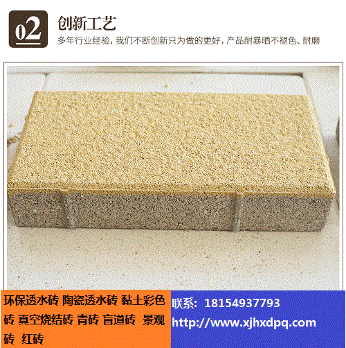 1: 透水性好:陶瓷透水磚采用合理的顆粒級配,可以迅速透過小到中雨的降水量。 2 :高強度:產品是經過1200-1300℃高溫燒成,產品結合是由顆粒間物理成分熔融后冷卻形成的結合,強度非常高。通常大于45兆帕。 3:抗凍融性能好:由于顆粒間孔隙大,結合是燒結結合,對于北方的凍融有良好的抗性。很好的解決了水泥透水磚的透水好則抗凍融不過關,抗凍融好則不透水的難題。 4:防滑性能好:陶瓷透水磚表面顆粒較粗,雨水滲透快,雨后和雪后不積水、不形成冰層,防滑效果較好。 5:良好的生態環保性能:可采用陶瓷廢料、下水道污泥顆粒、廢耐材、過火矸等工業廢料生產,而且可重復利用。破碎后可再次燒制成磚。 6:可改善城市微氣候、阻滯城市洪水的形成:陶瓷透水磚的孔隙率在20-30%,本身有良好的蓄水能力,在夏天,雨后水吸滿滲透入地,滋養地氣、涵養水源、對樹木和花草提供水分;在陽光強烈時,水分蒸發可降低地表溫度,改善微氣候。如形成大面積鋪裝,可有效阻滯雨水,減少城市洪水形成的幾率。